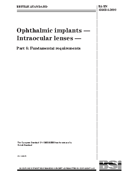Ophthalmic implants. Intraocular lenses Fundamental requirements
