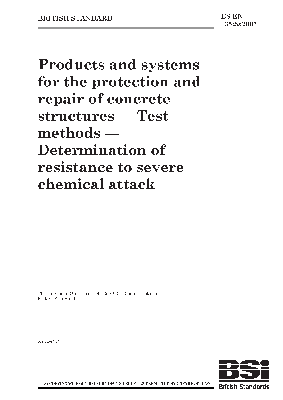 Products and systems for the protection and repair of concrete structures. Test methods. Determination of resistance to severe chemical attack
