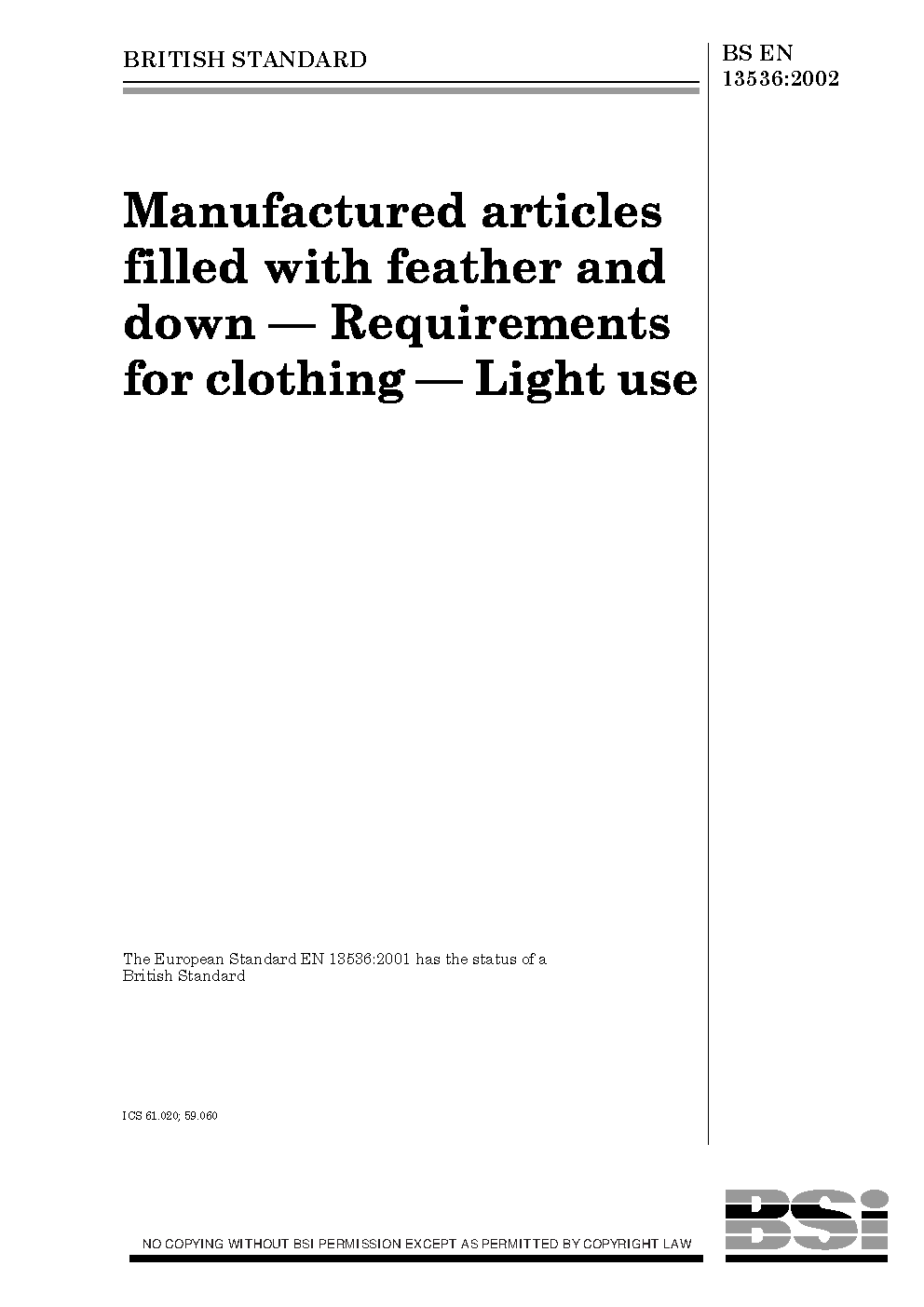 Manufactured articles filled with feather and down. Requirements for clothing. Light use