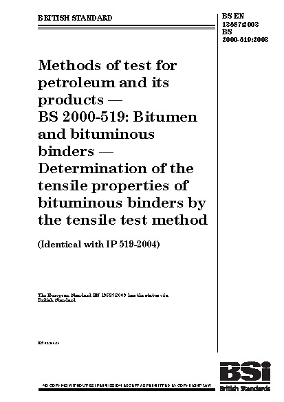 Methods of test for petroleum and its products. BS 2000-519. Bitumen and bituminous binders. Determination of the tensile properties of bituminous binders by the tensile test method