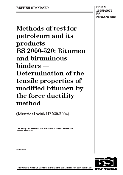 Methods of test for petroleum and its products. Bitumen and bituminous binders. Determination of the tensile properties of modified bitumen by the force ductility method