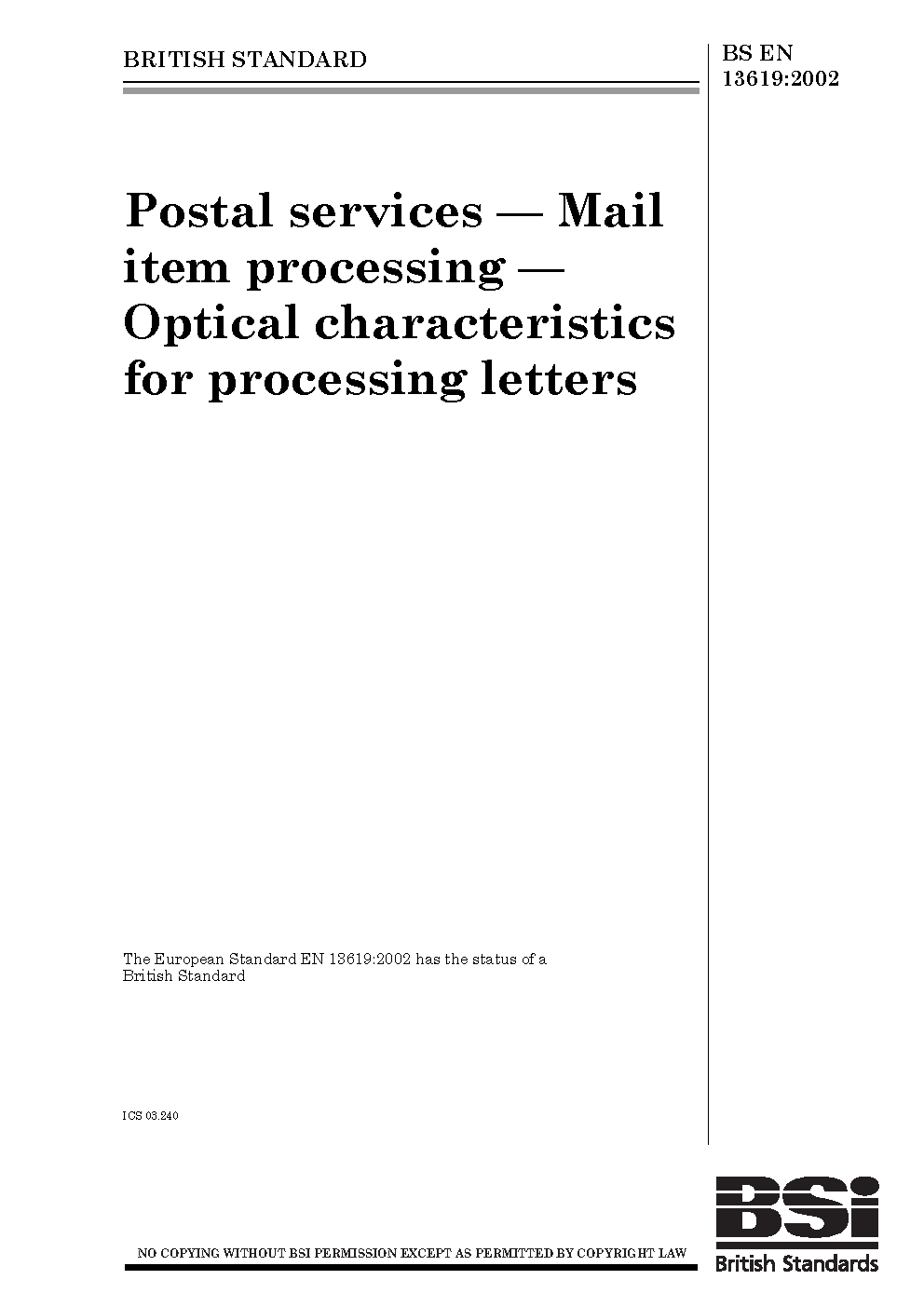 Postal services. Mail item processing. Optical characteristics for processing letters