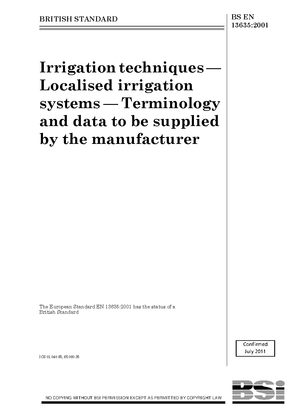 Irrigation techniques. Localised irrigation systems. Terminology and data to be supplied by the manufacturer