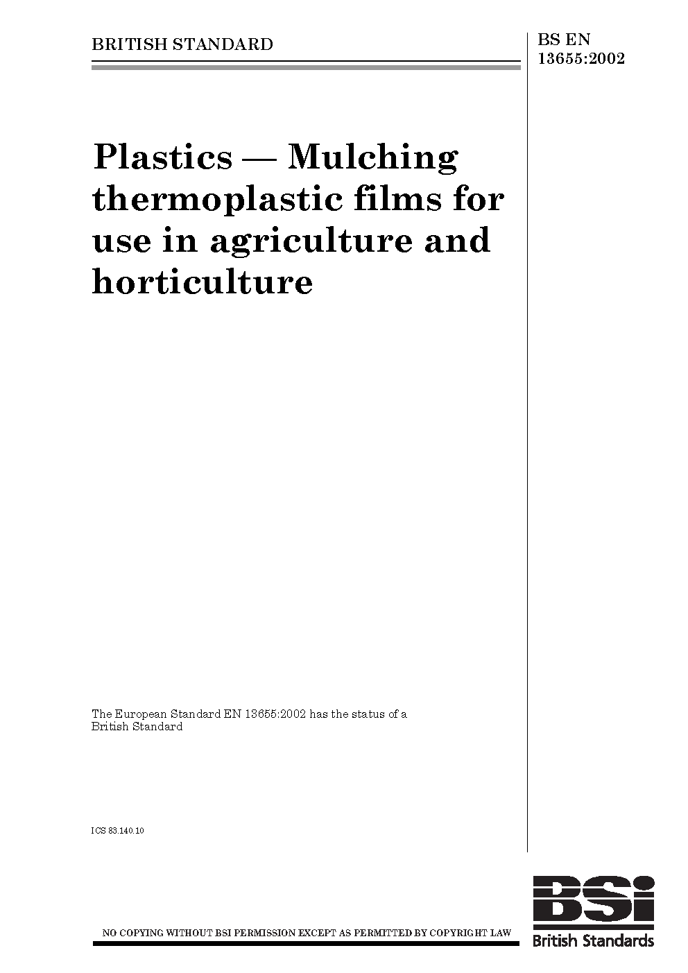 Plastics. Thermoplastic mulch films recoverable after use, for use in agriculture and horticulture