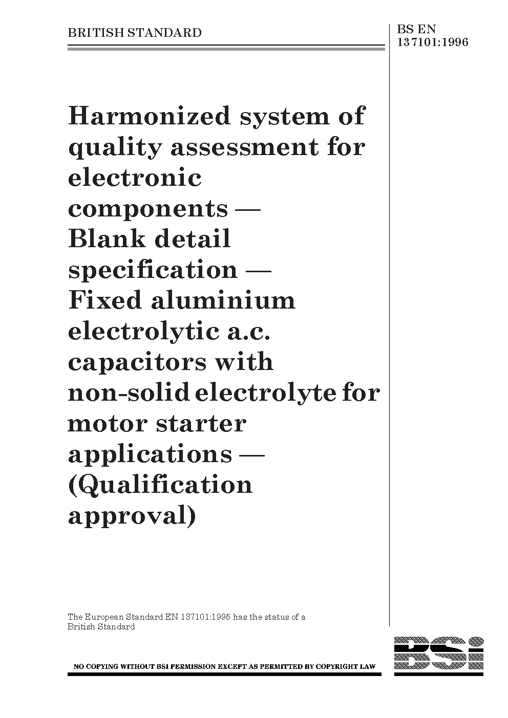 Harmonized system of quality assessment for electronic components. Blank detail specification. Fixed aluminium electrolytic a.c. capacitors with non-solid electrolyte for motor starter applications (Qualification approval)
