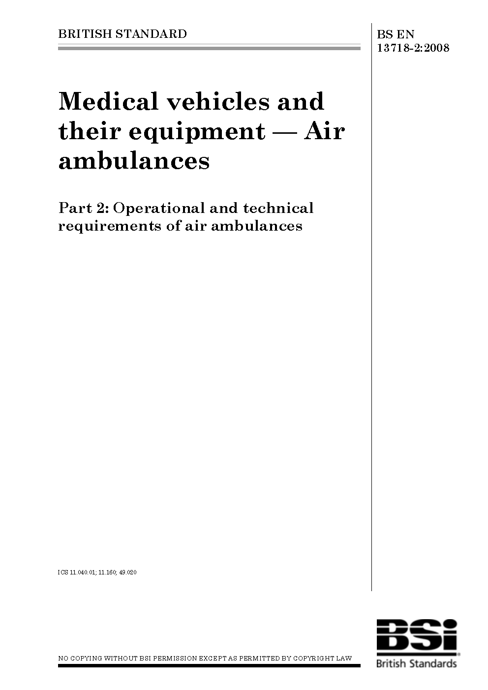 Medical vehicles and their equipment. Air ambulances Operational technical requirements of air