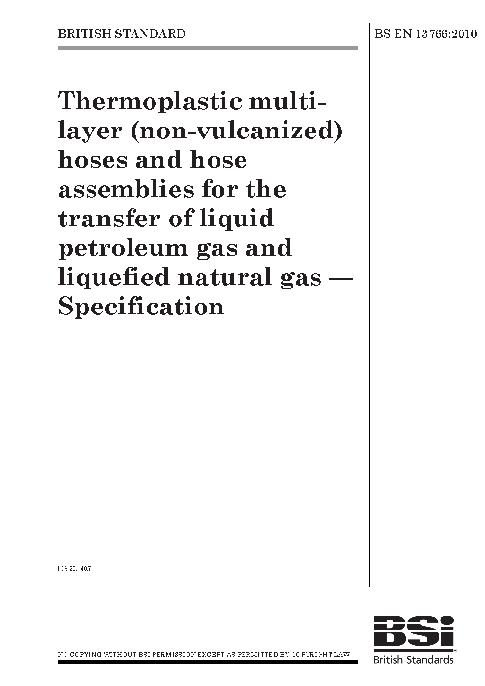 Thermoplastic multi-layer (non-vulcanized) hoses and hose assemblies for the transfer of liquid petroleum gas and liquefied natural gas. Specification