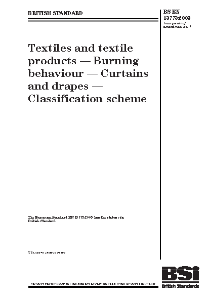 Fire tests;Curtains;Textile testing;Classification systems;Burning behaviour;Fabric testing;Textiles;Ignitability;Flame-spread classifications;Vertical;Textile products;Furnishing fabrics