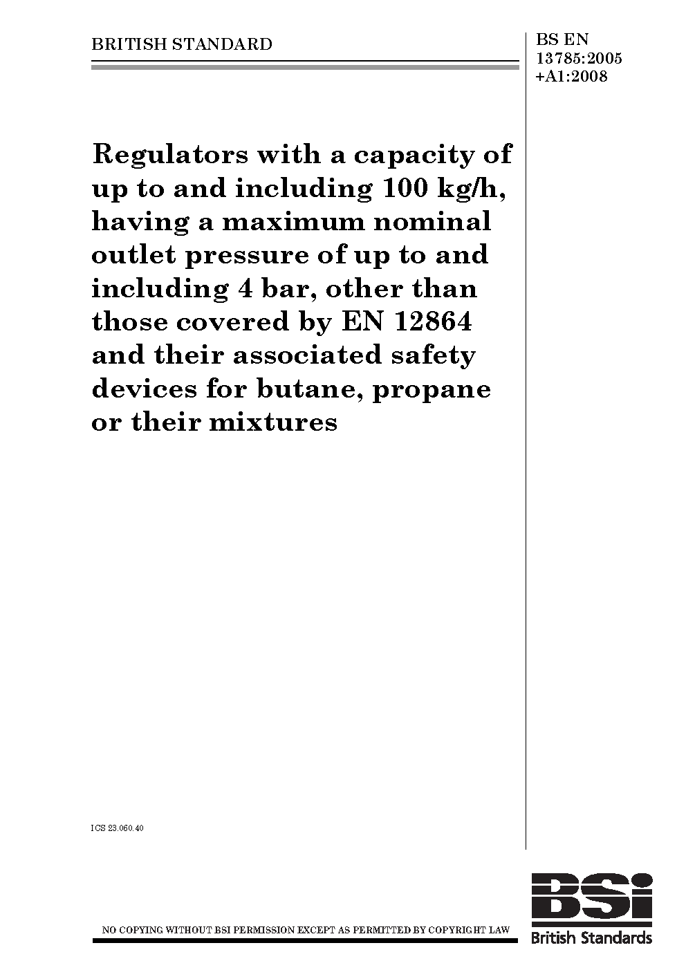 Regulators with a capacity of up to and including 100 kg/h, having a maximum nominal outlet pressure of up to and including 4 bar, other than those covered by EN 12864 and their associated safety devices for butane, propane or their mixtures