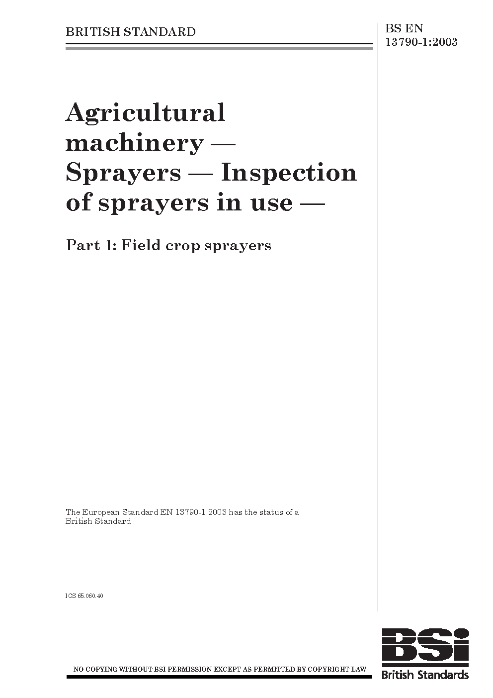 Agricultural machinery. Sprayers. Inspection of sprayers in use Field crop
