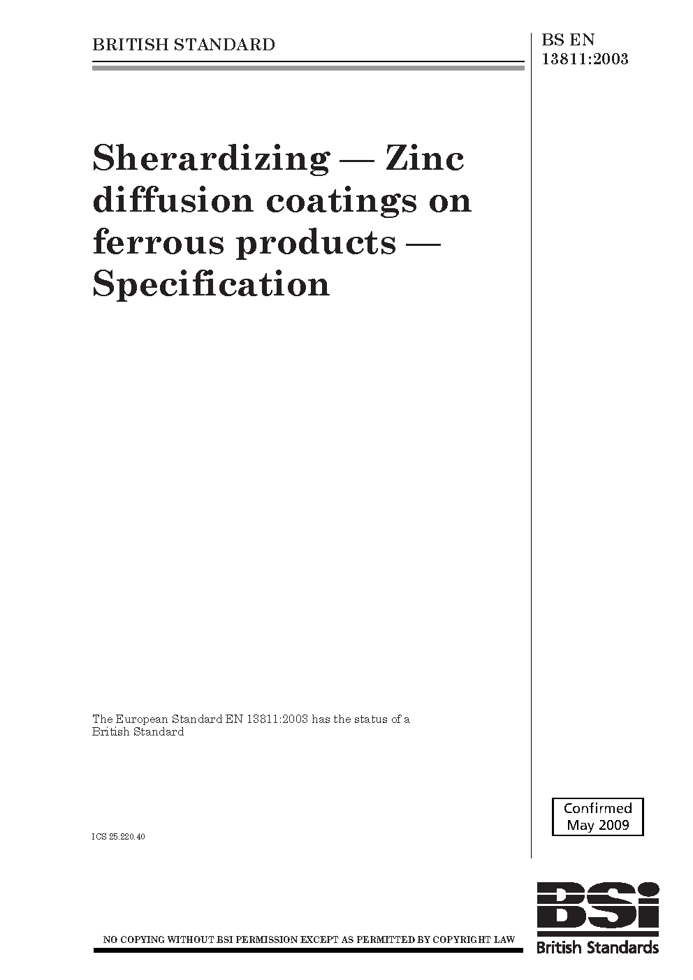 Sherardizing. Zinc diffusion coatings on ferrous products. Specification