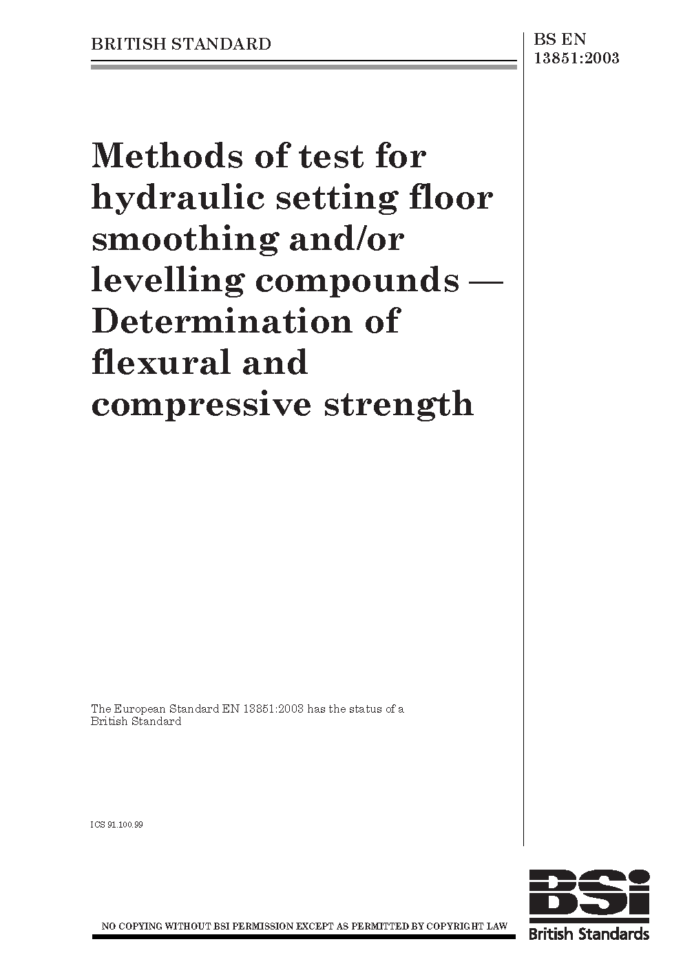Methods of test for hydraulic setting floor smoothing and/or levelling compounds. Determination of flexural and compressive strength