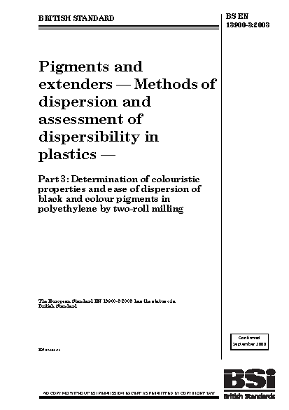 Pigments and extenders. Methods of dispersion assessment dispersibility in plastics Determination colouristic properties ease black colour pigments polyethylene by two-roll milling