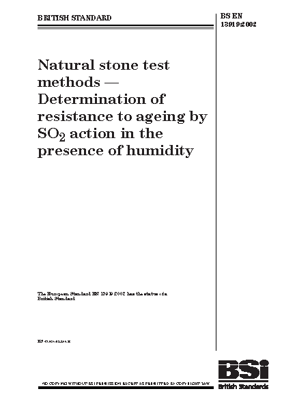 Natural stone test methods. Determination of resistance to ageing by SO2 action in the presence of humidity