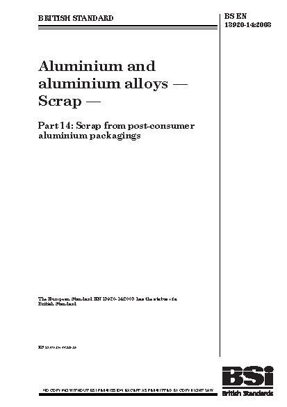 Aluminium and aluminium alloys. Scrap from post-consumer packagings