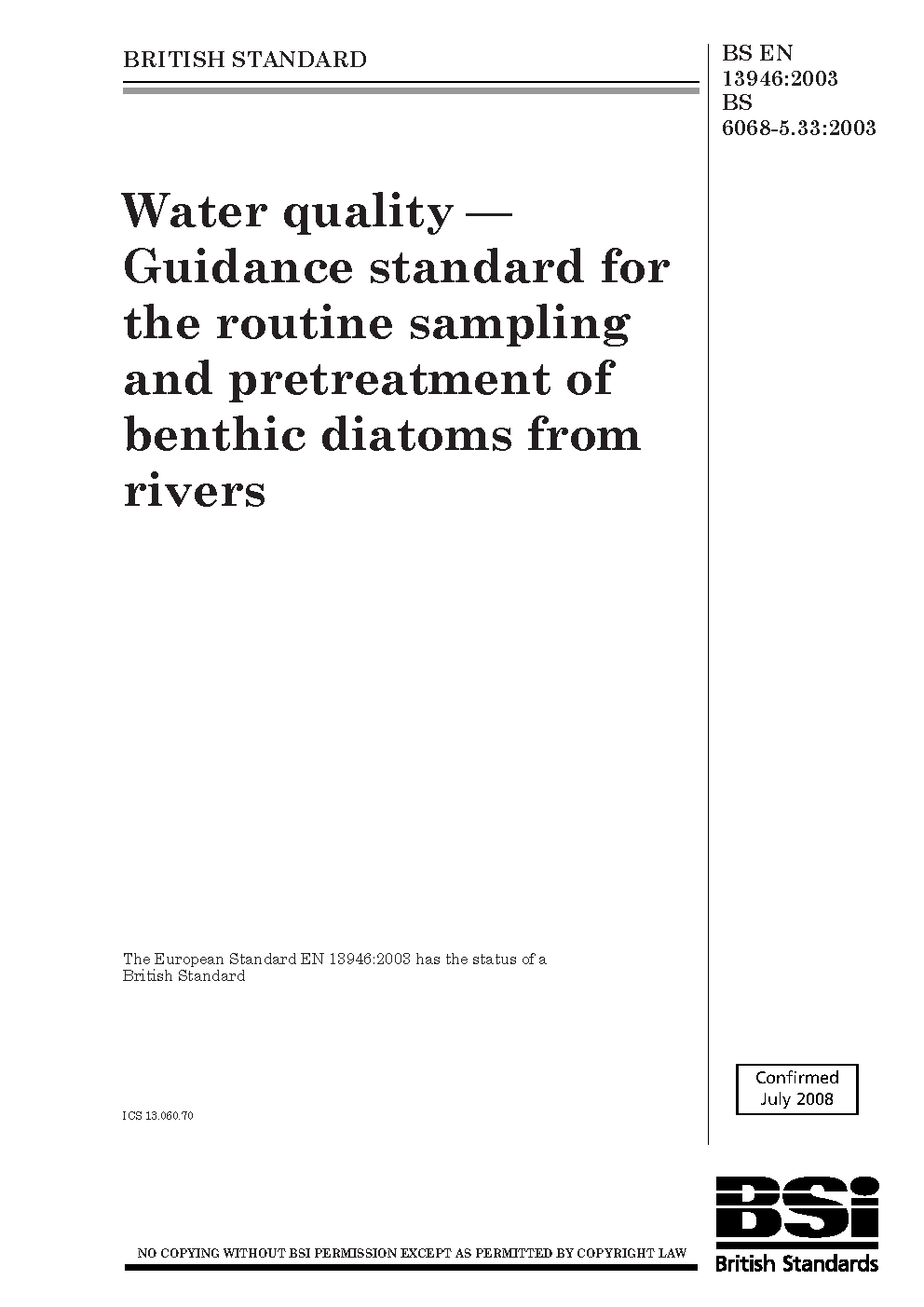 Water quality. Guidance for the routine sampling and preparation of benthic diatoms from rivers and lakes