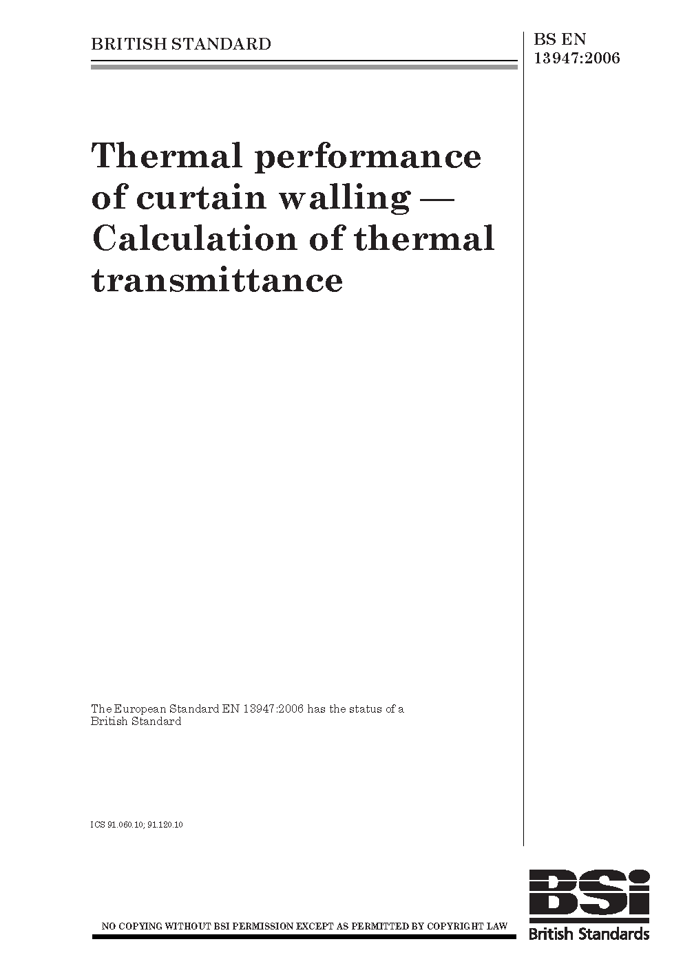 Thermal performance of curtain walling. Calculation of thermal transmittance