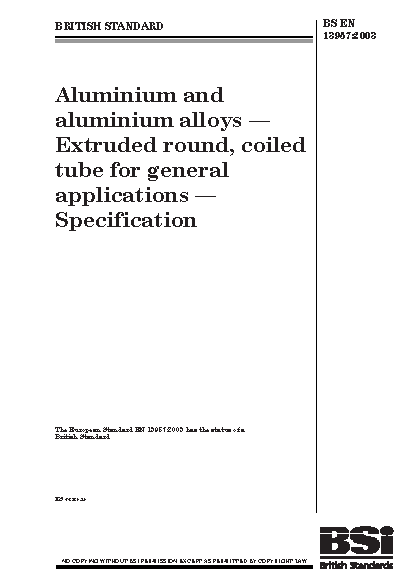 Aluminium and aluminium alloys. Extruded round, coiled tube for general applications. Specification