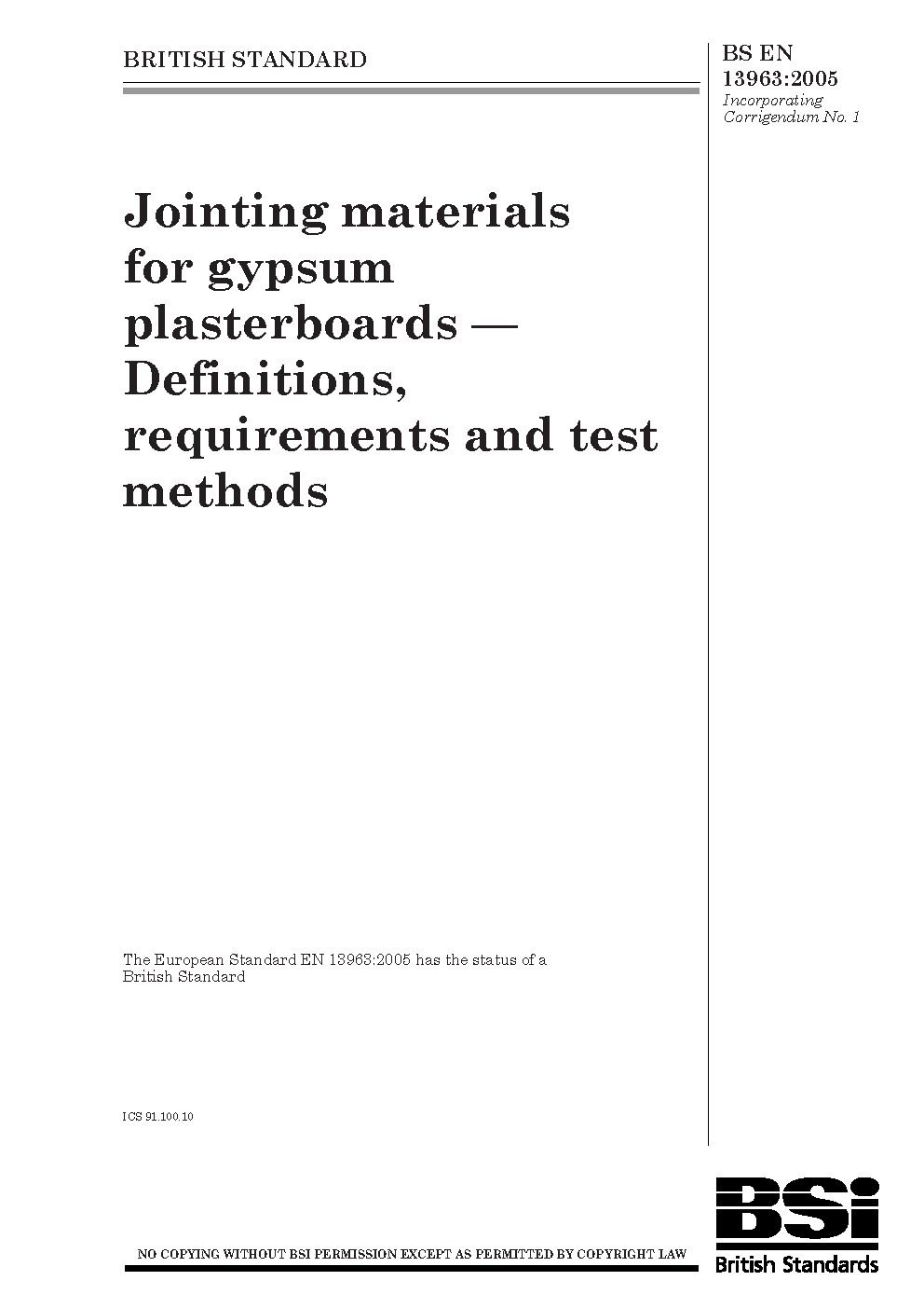 Gypsum plaster;Conformity;Bend testing;Fire tests;Tape;Approval testing;Paper;Joints;Acceptance (approval);Flexural strength;Sealing materials;Plasterboard;Wallboard