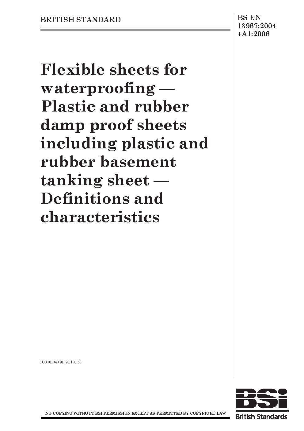 Flexible sheets for waterproofing. Plastic and rubber damp proof sheets including plastic and rubber basement tanking sheet. Definitions and characteristics