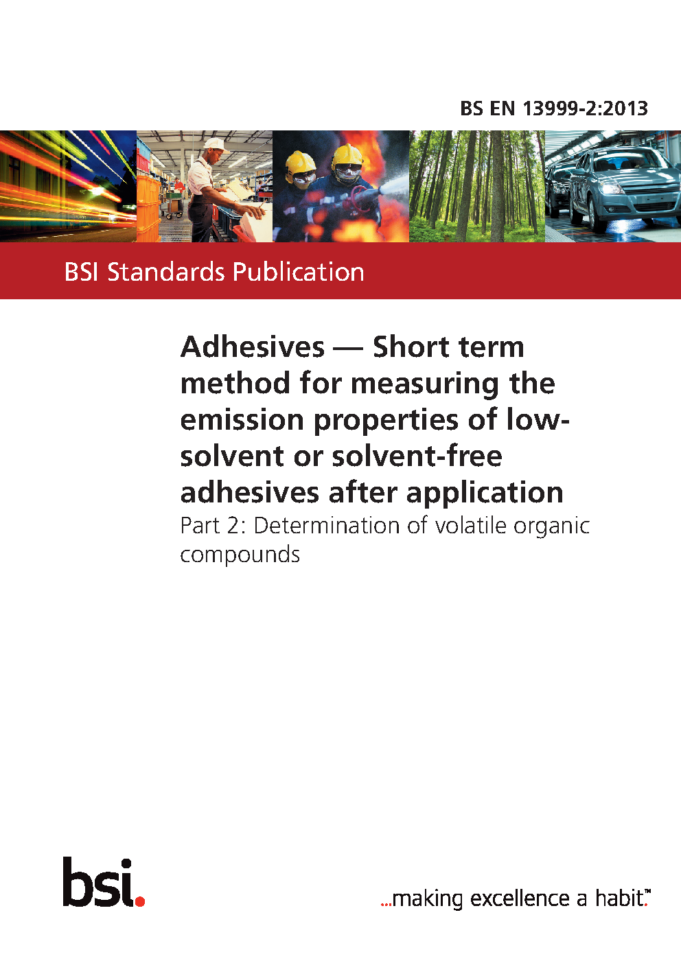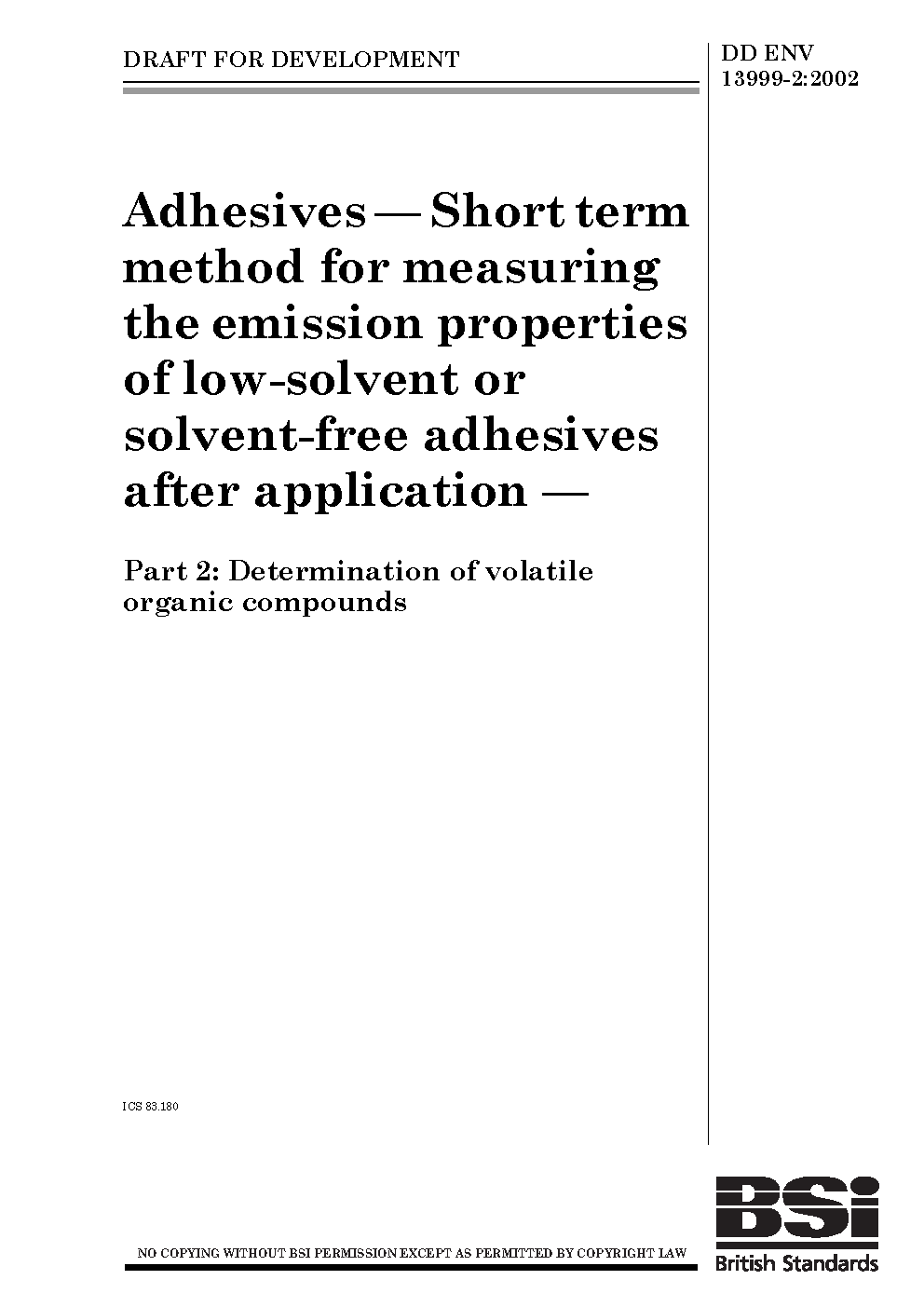Adhesives. Short term method for measuring the emission properties of low-solvent or solvent-free adhesives after application Determination volatile organic compounds