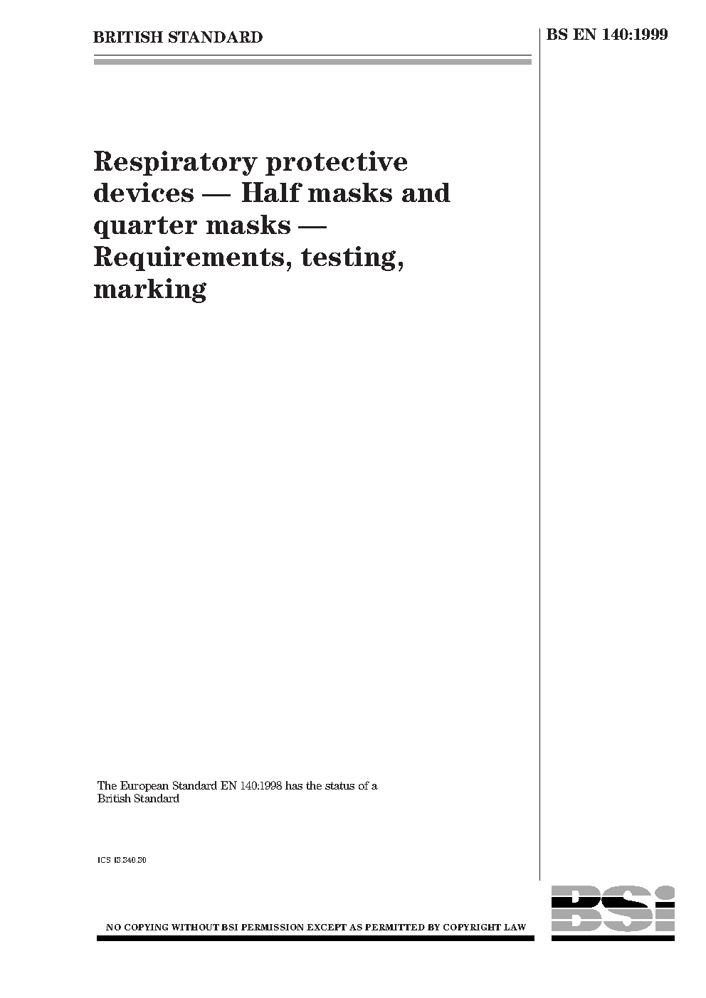 Respiratory protective devices. Half masks and quarter masks. Requirements, testing, marking