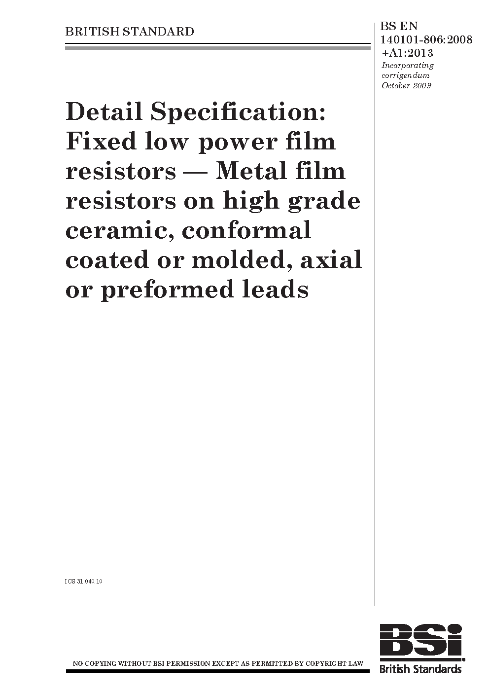 Detail Specification: Fixed low power film resistors. Metal film resistors on high grade ceramic, conformal coated or molded, axial or preformed leads