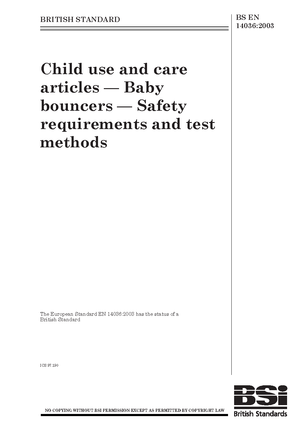 Child use and care articles. Baby bouncers. Safety requirements and test methods