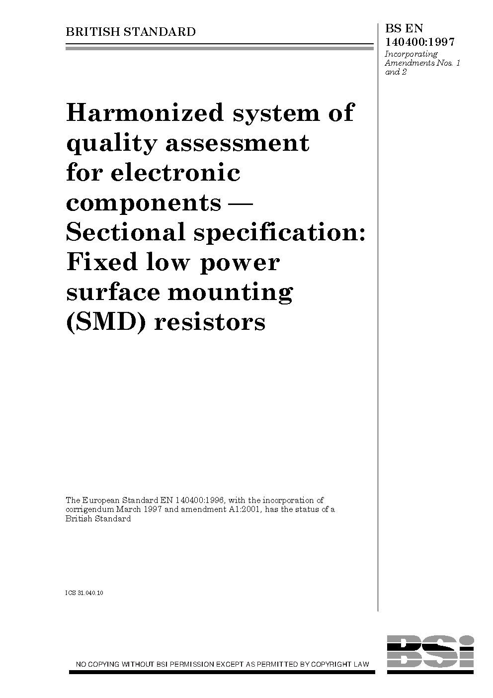Harmonized system of quality assessment for electronic components. Sectional specification:fixed low power surface mounting (SMD) resistors