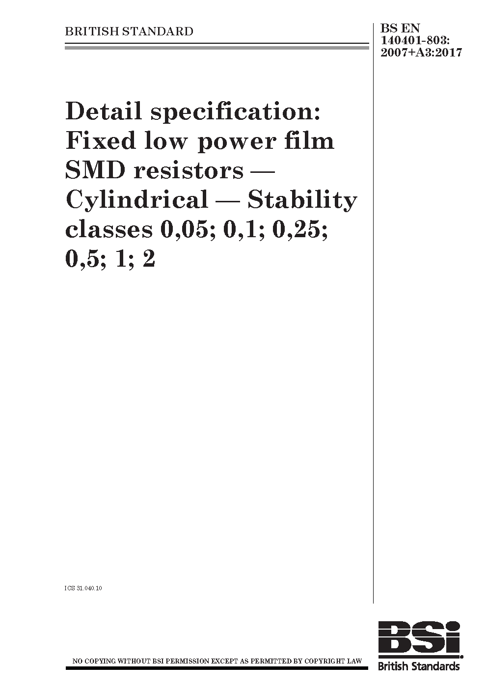 Cylindrical shape;Resistors;Surface mounting devices;Detail specification;Electronic equipment and components;Fixed resistors;Surface mounting;Ratings;Classification systems;Specification (approval);Assessed quality;Stability;Non-wirewound resistors