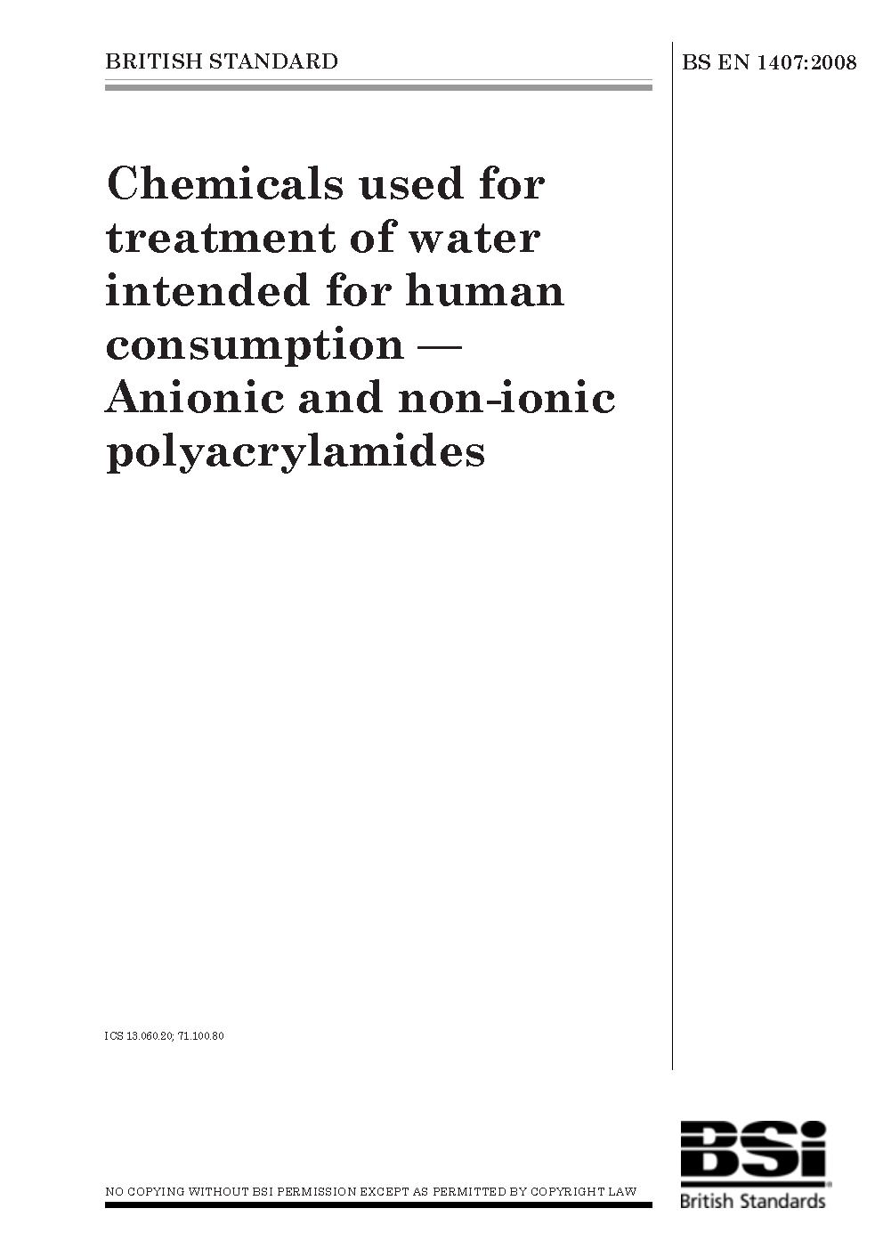 Instructions for use;Polyamides;Water purification;Chemical properties;Monomers;Determination of content;Marking;Chemical composition;Purity;Physical properties of materials;Potable water;Polyacrylamides;Delivery;Anions;Impurities;Water treatment;Storage;Safety measures