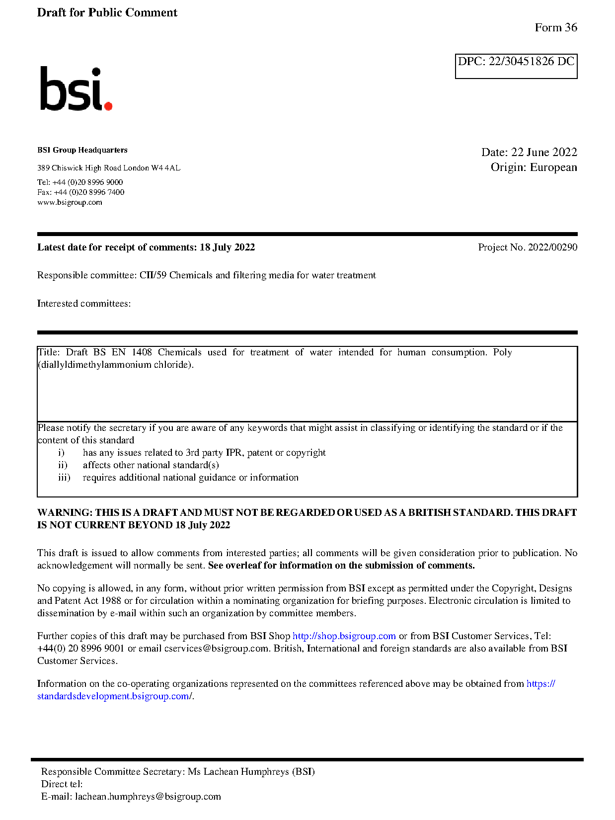 Chemicals used for treatment of water intended for human consumption. Poly (diallyldimethylammonium chloride)