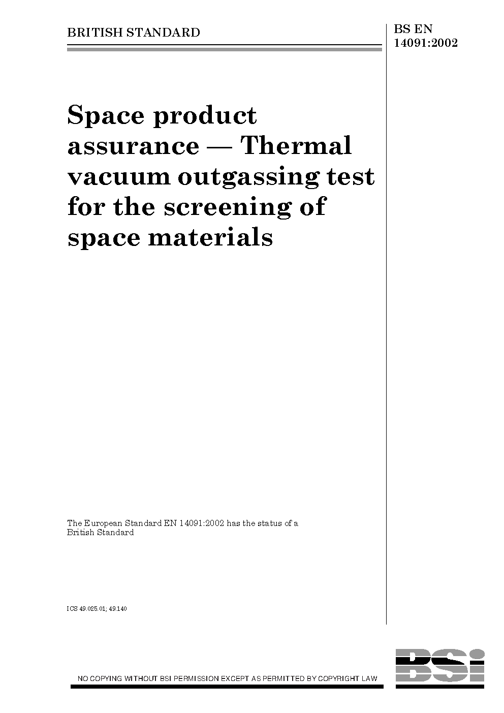 Space product assurance. Thermal vacuum outgassing test for the screening of space materials