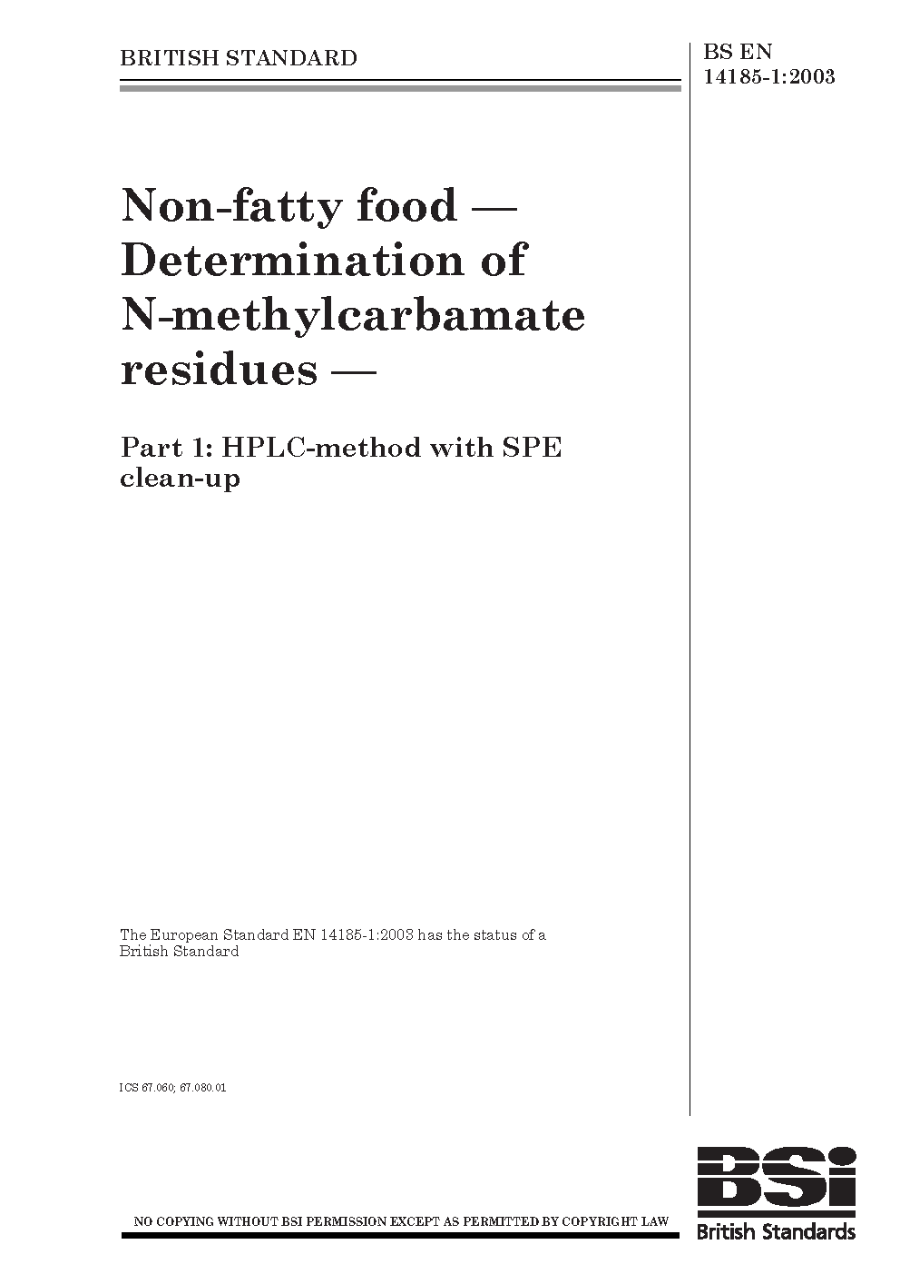 Non-fatty food. Determination of N-methylcarbamate residues HPLC-method with SPE clean-up