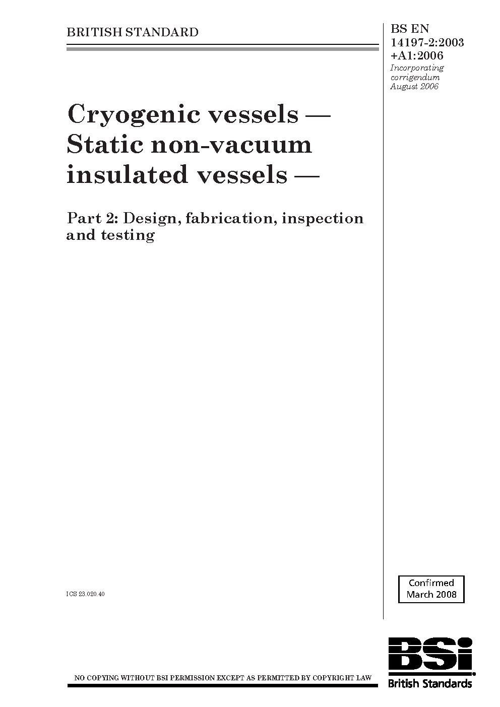 Cryogenic equipment;Pressure vessels;Design;Visual inspection (testing);Inspection;Test methods;Cryogenics