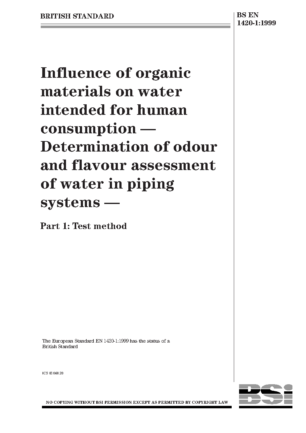 Influence of organic materials on water intended for human consumption. Determination odour and flavour assessment in piping systems systems. Test method