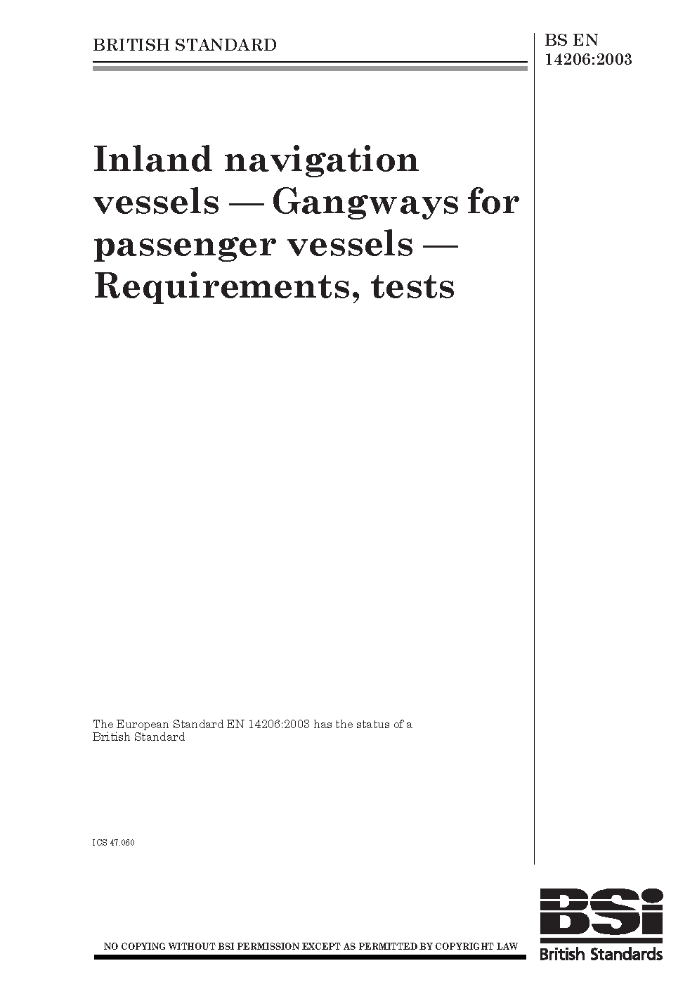Inland navigation vessels. Gangways for passenger vessels. Requirements, tests