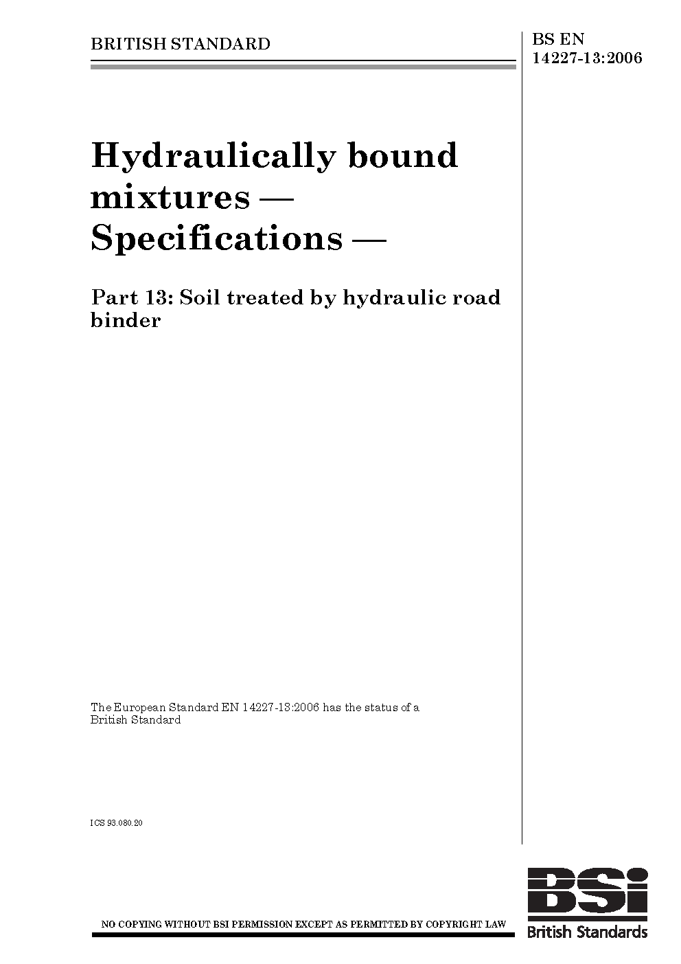 Hydraulically bound mixtures. Specifications Soil treated by hydraulic road binder