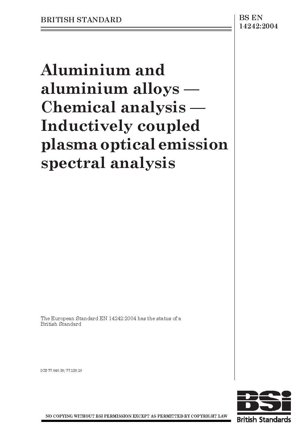 Emission spectrophotometry;Aluminium;Determination of content;Spectroscopy;Chemical analysis and testing;Spectrophotometry;Aluminium alloys;Plasma