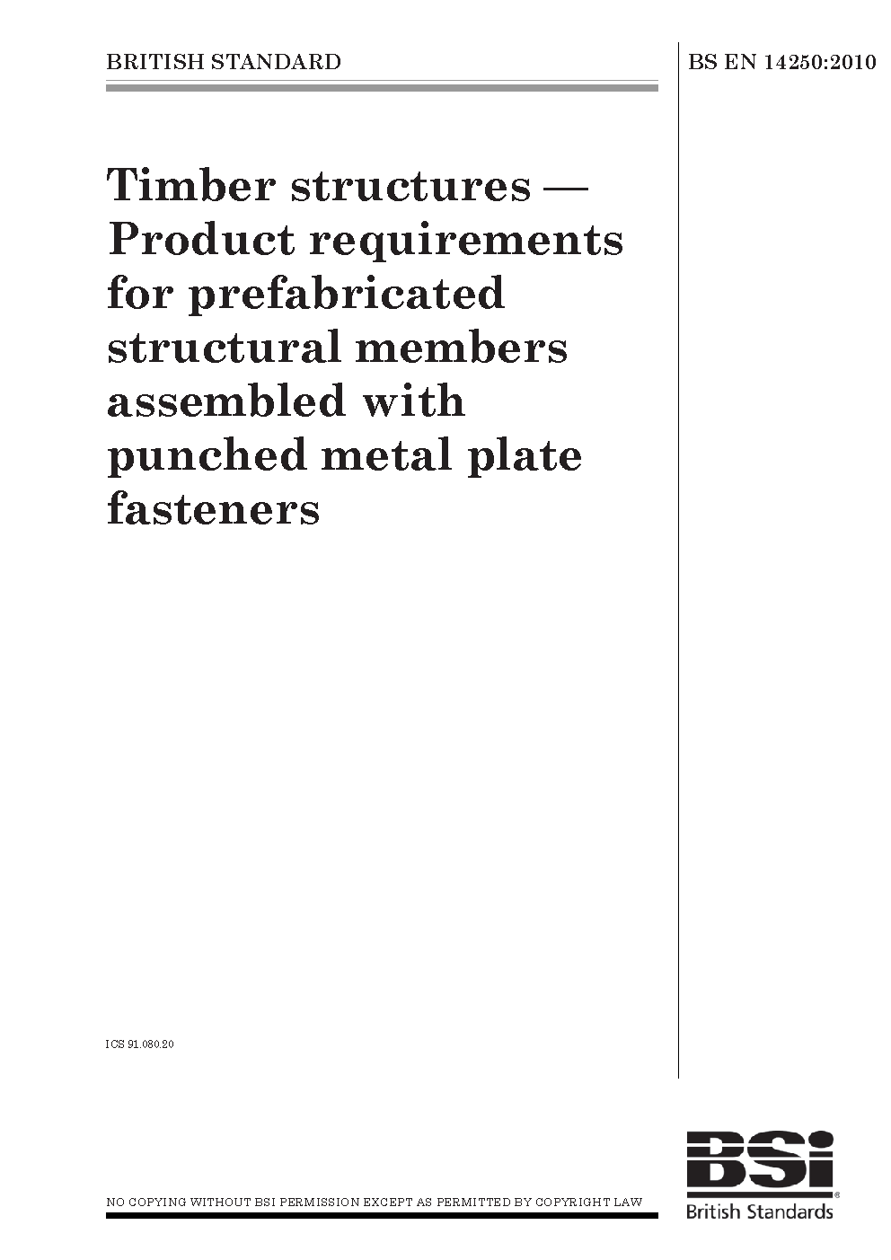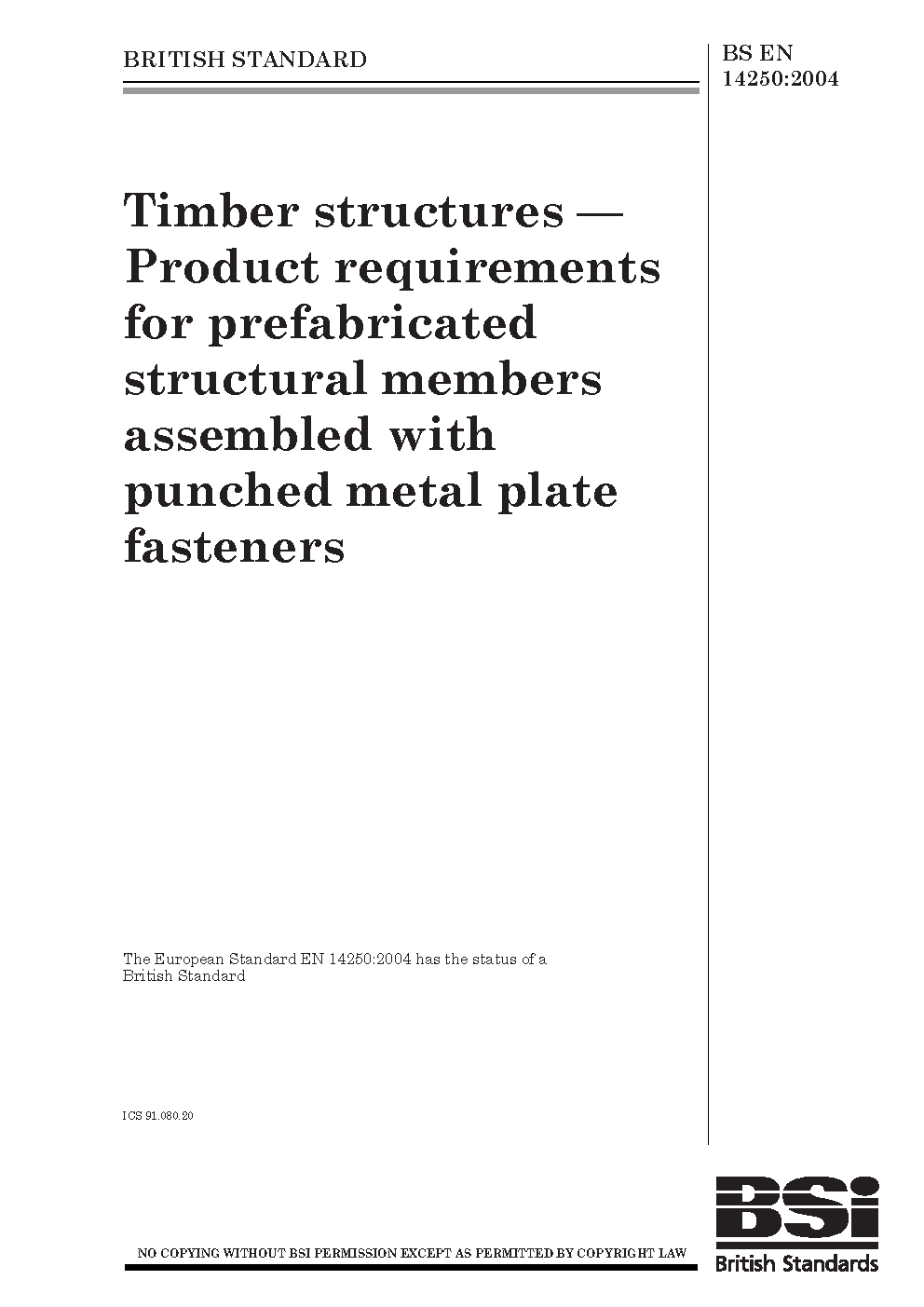 Timber structures. Product requirements for prefabricated structural members assembled with punched metal plate fasteners