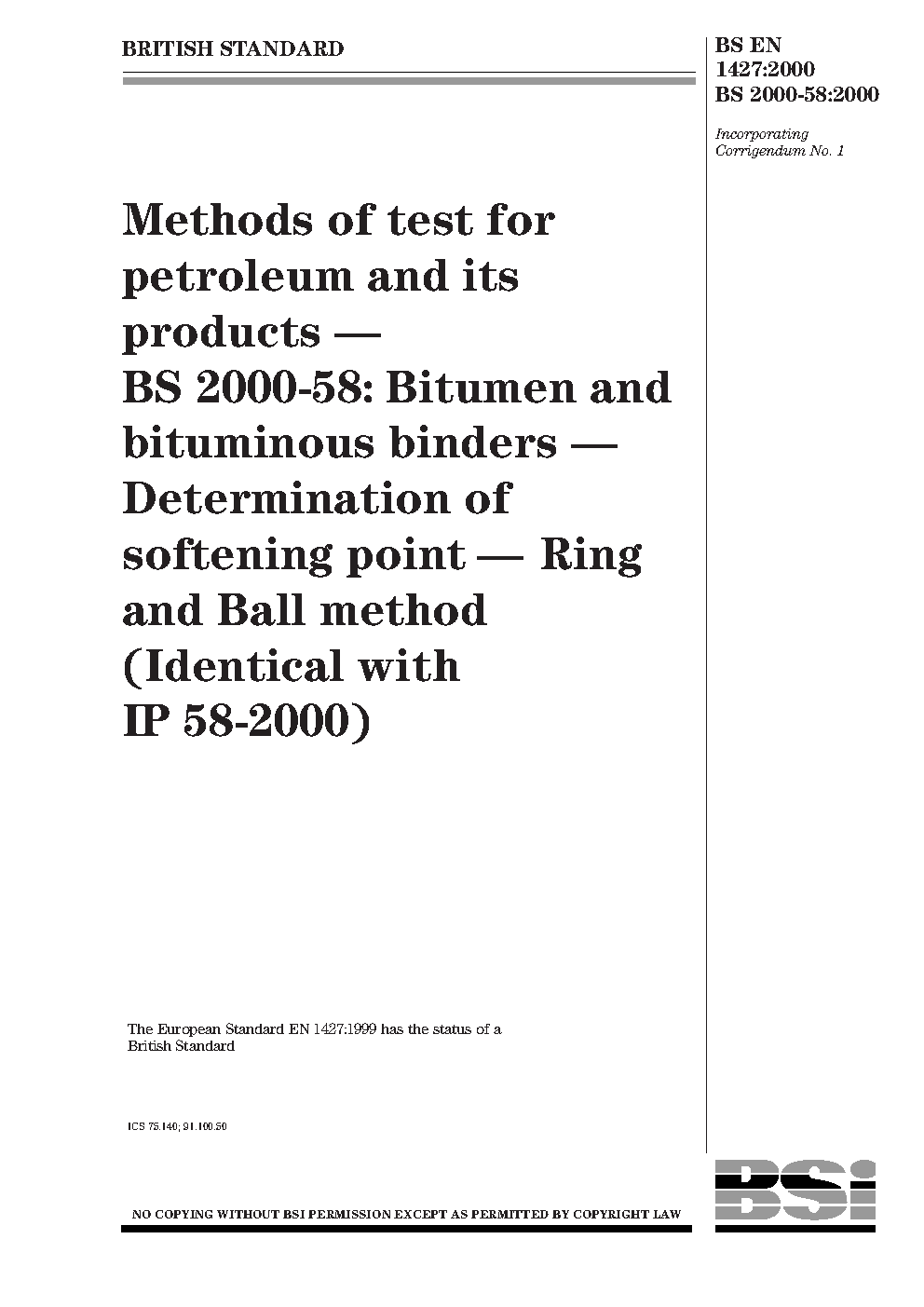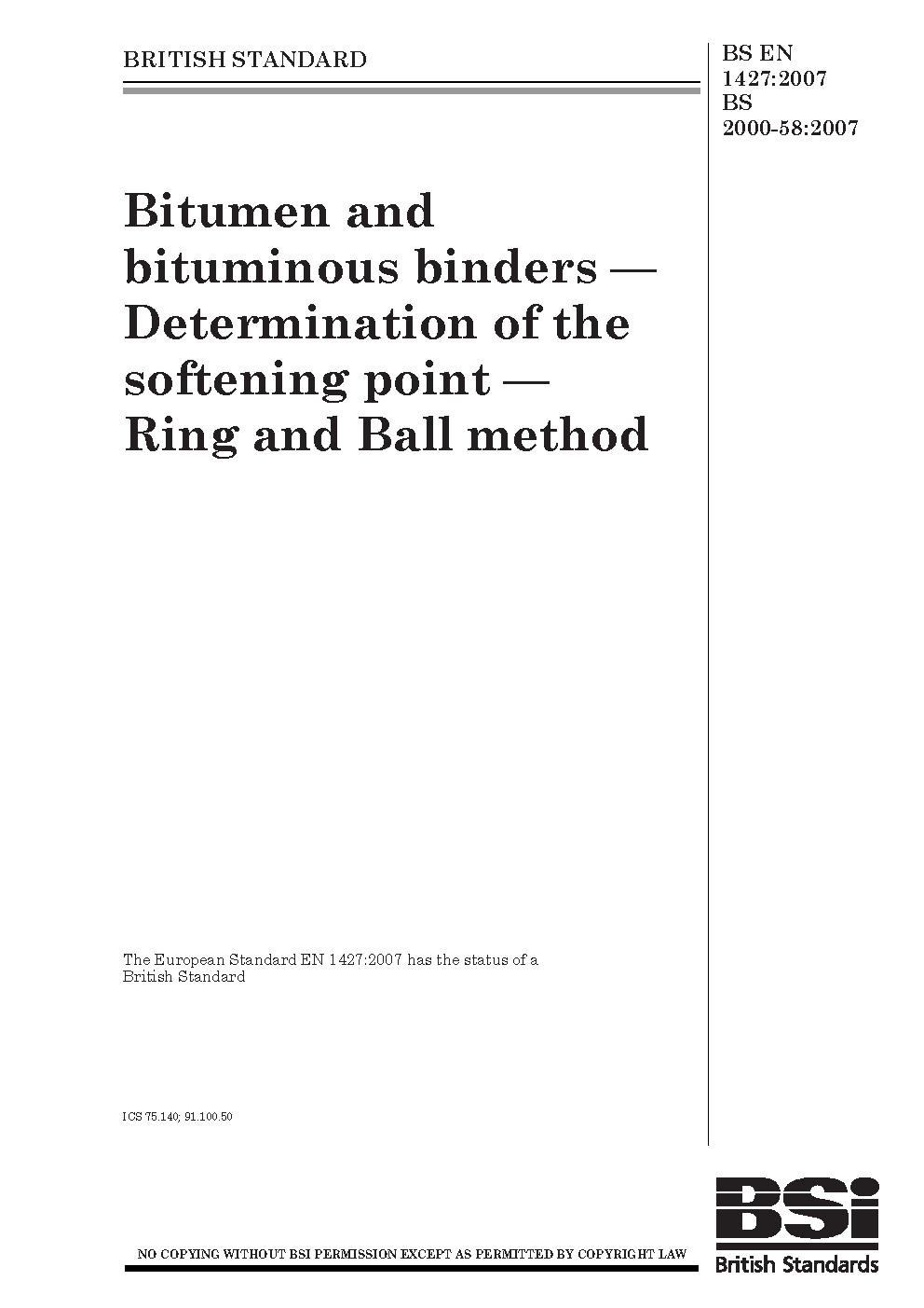 Bitumen and bituminous binders. Determination of the softening point. Ring and Ball method