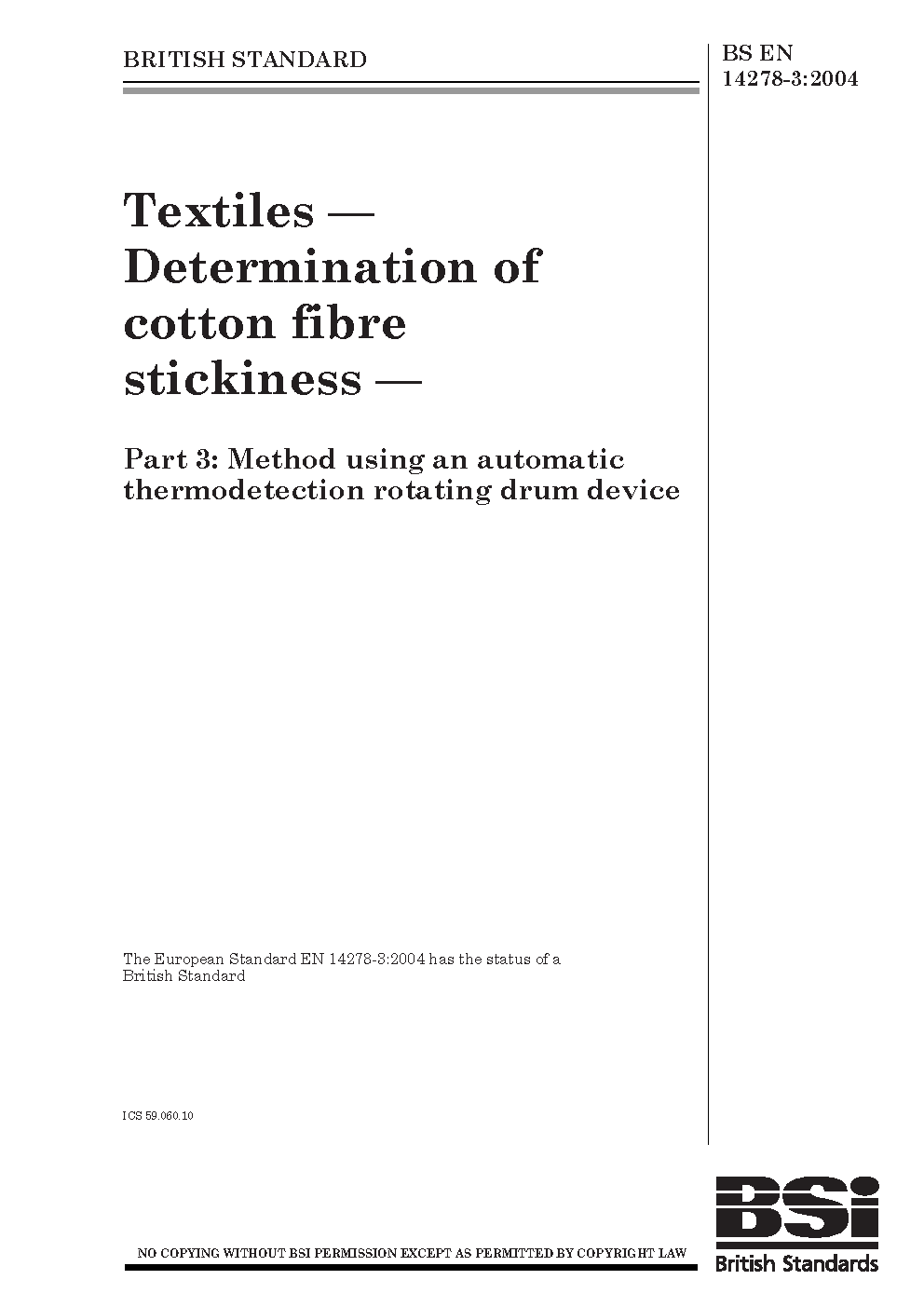 Textiles. Determination of cotton fibres stickiness Method using an automatic thermodetection rotating drum device