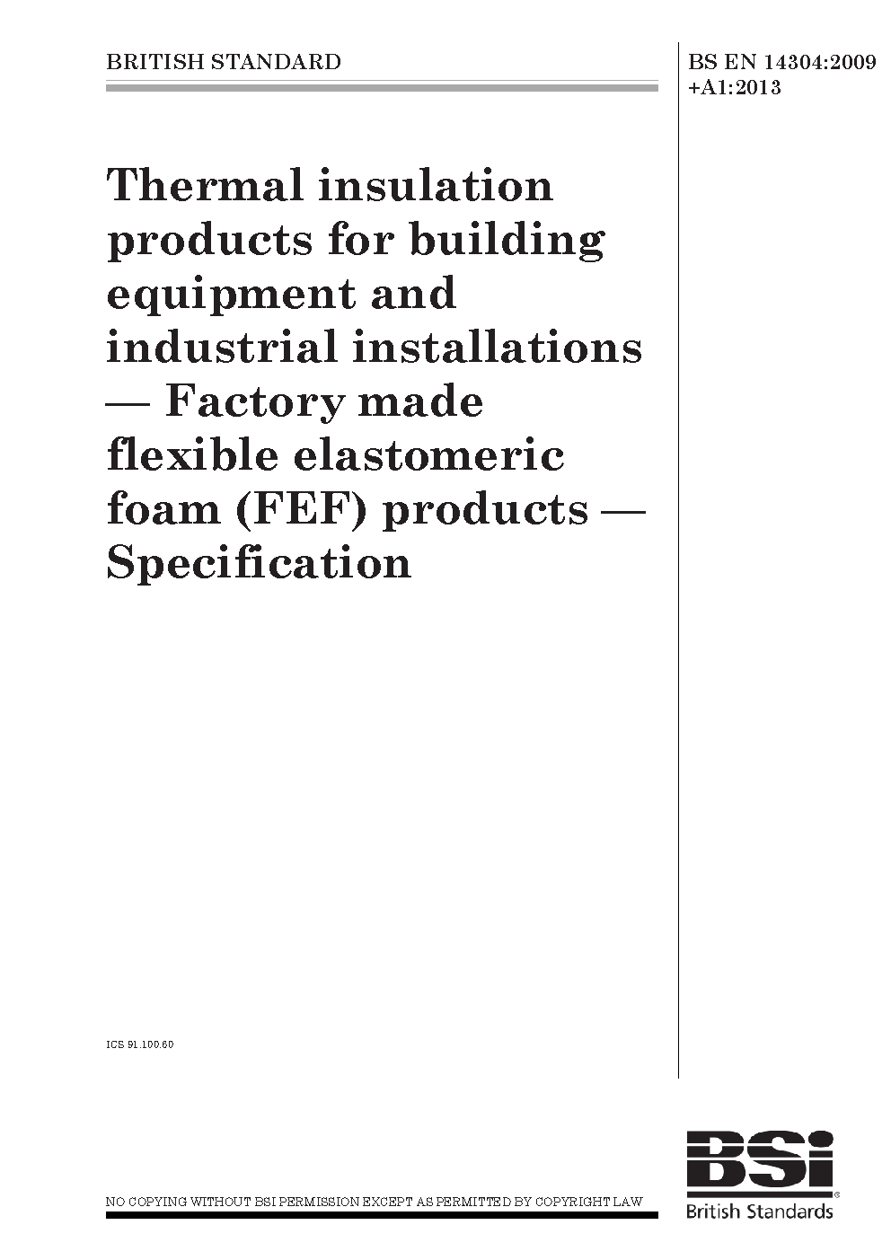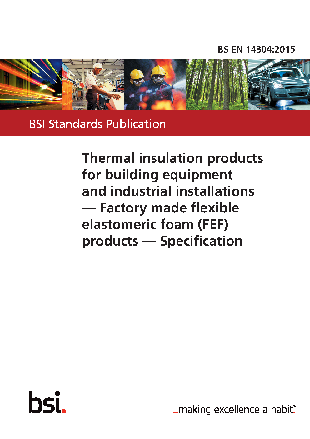 Thermal insulation products for building equipment and industrial installations. Factory made flexible elastomeric foam (FEF) products. Specification