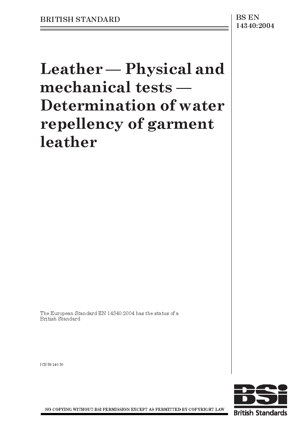 Leather. Physical and mechanical tests. Determination of water repellency of garment leather