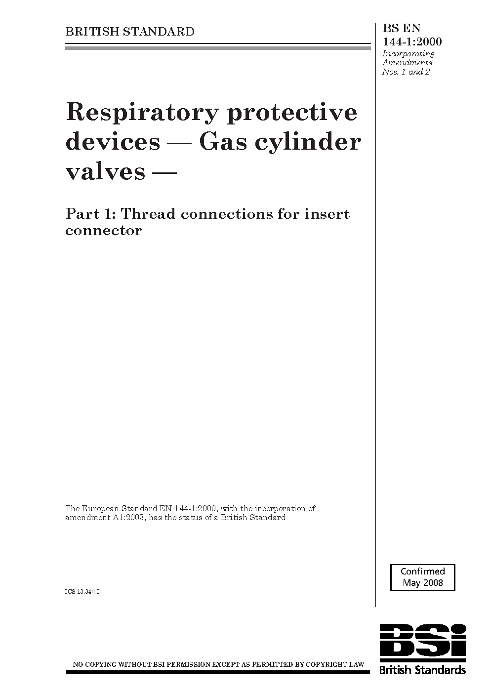 BS EN 144-1:2000