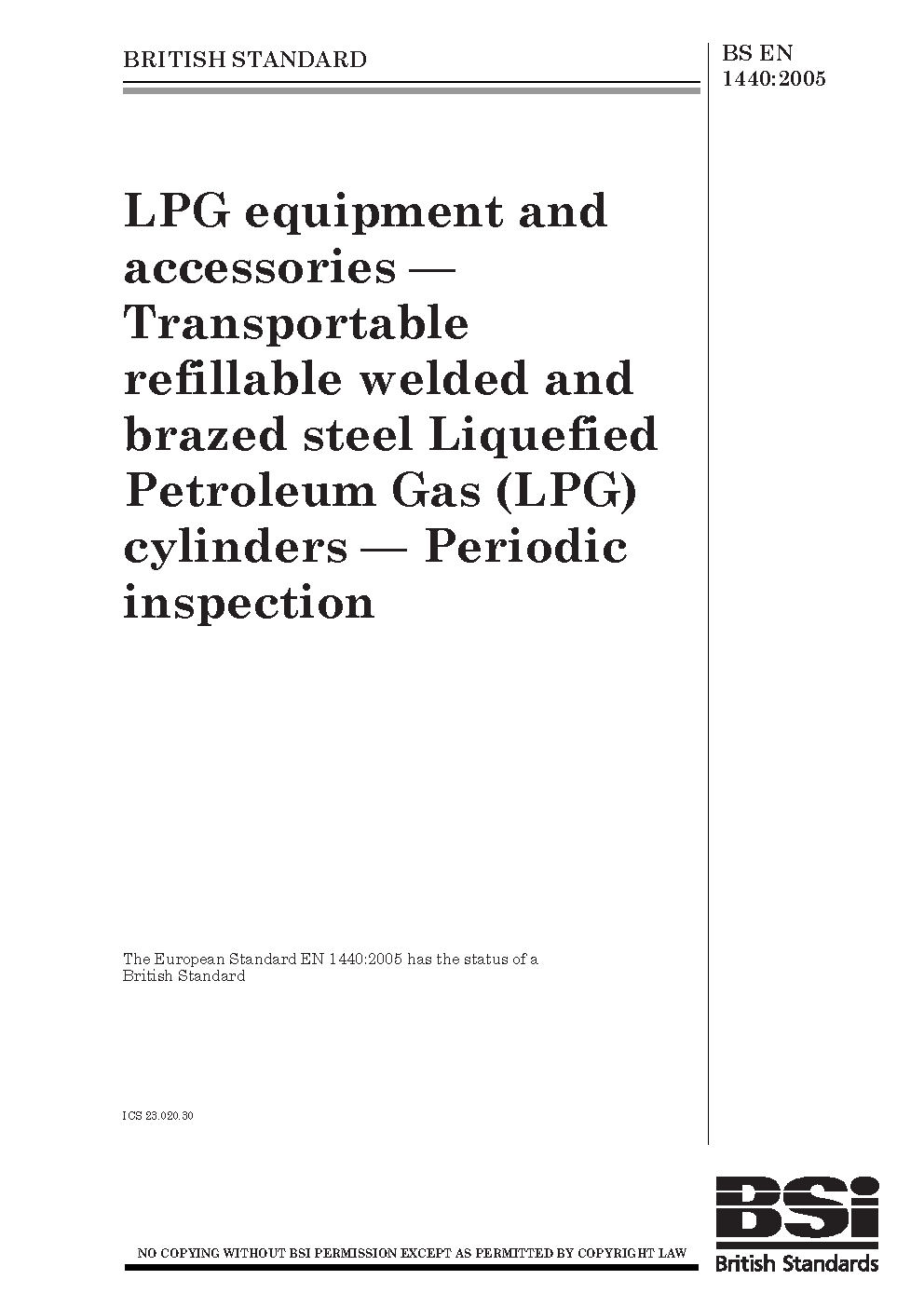 LPG equipment and accessories. Transportable refillable traditional welded and brazed steel Liquefied Petroleum Gas (LPG) cylinders. Periodic inspection