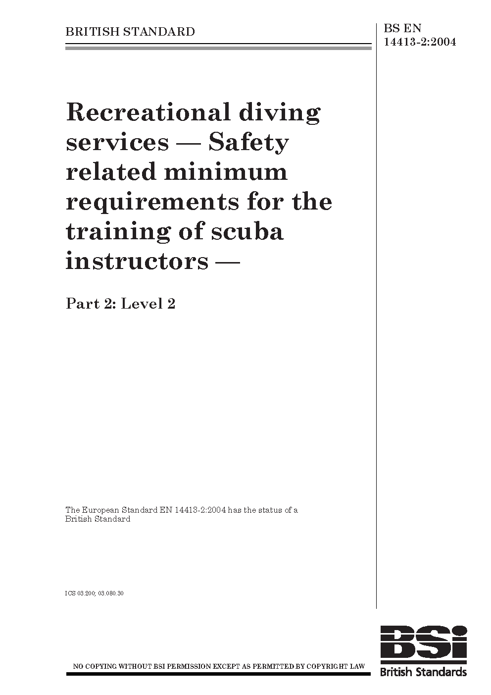 Recreational diving services. Safety related minimum requirements for the training of scuba instructors Level 2