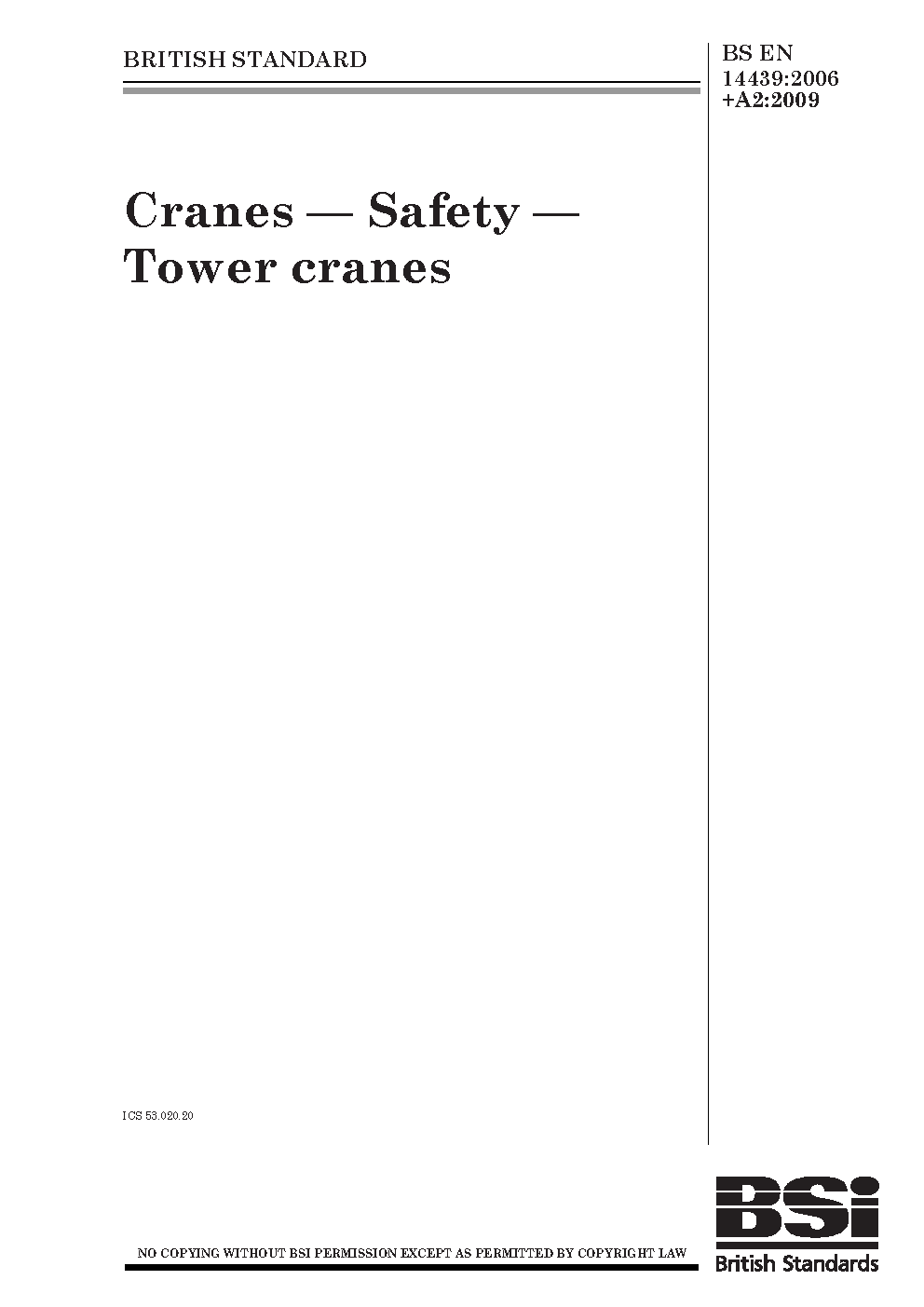Safety measures;Safety devices;Tower cranes;Structural design;Construction equipment;Marking;Occupational safety;Verification;Cranes;Instructions for use;Noise (environmental);Lifting equipment;Control systems;Equipment safety;Hazards