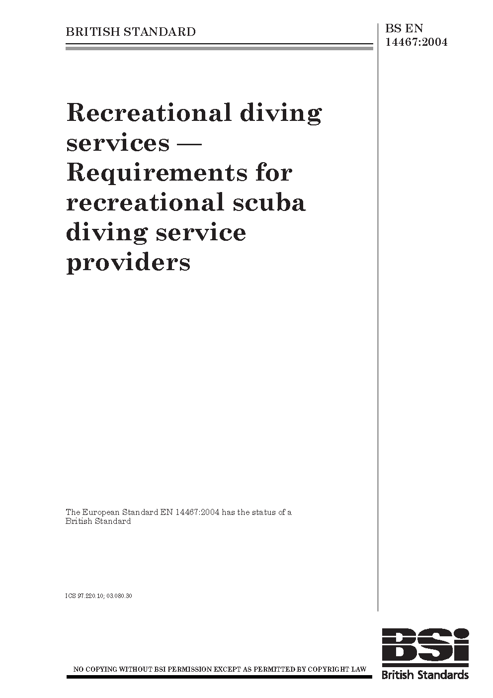 Recreational diving services. Requirements for recreational scuba diving service providers