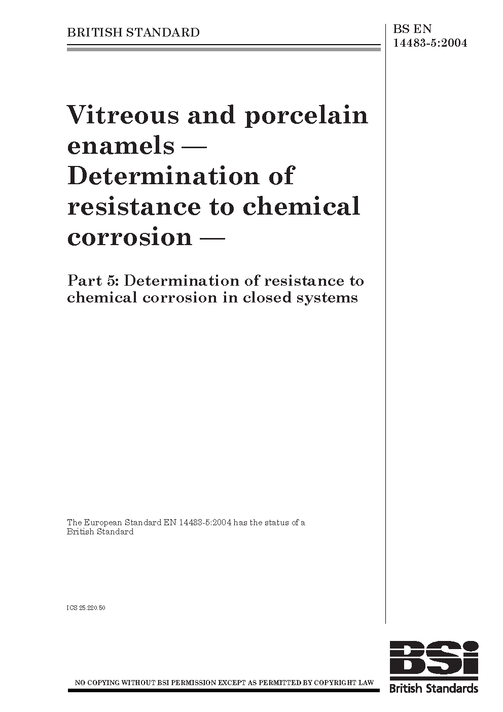 Vitreous and porcelain enamels. Determination of resistance to chemical corrosion in closed systems